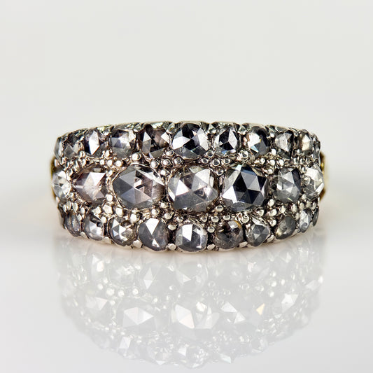 18ct Gold & Silver Antique Georgian 2.1ct Old Rose Cut Diamond Triple Row Ring
