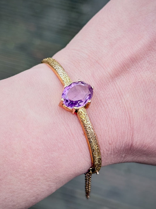 9ct Gold Antique Amethyst Art Nouveau bangle bracelet 7 1/4 inch 10 Grams Heavy