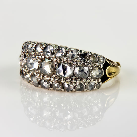 18ct Gold & Silver Antique Georgian 2.1ct Old Rose Cut Diamond Triple Row Ring
