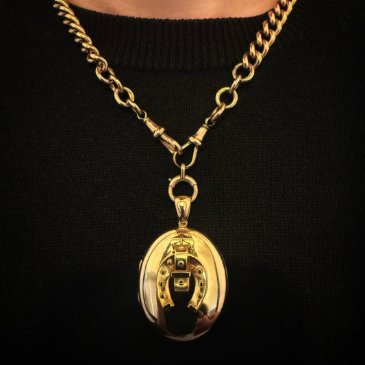 Large 15CT Gold Antique Victorian Horse shoe Pendant Memorial Locket 22.8 grams