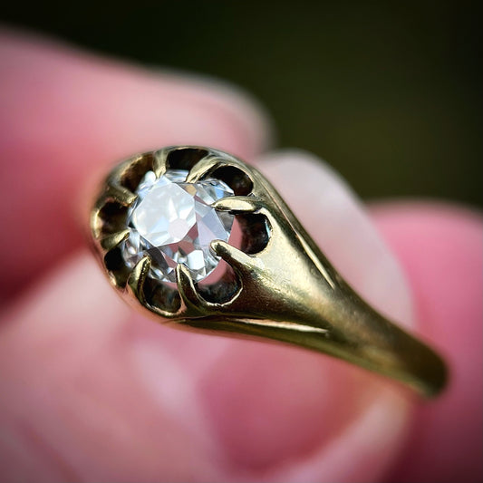 Superb 18ct Gold Antique 0.50ct Old European Cut Diamond Solitaire Gypsy Ring