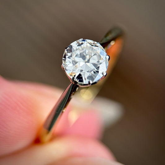 18ct Gold 0.80ct Old Transitional Cut Diamond Solitaire Engagement Ring