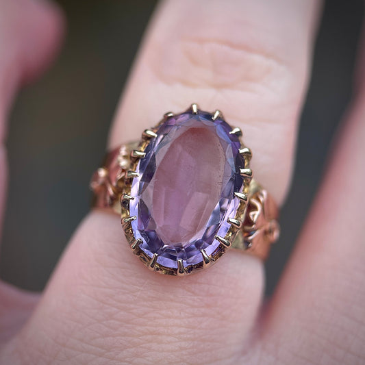 18ct Gold Antique Amethyst Solitaire Art Nouveau Arts & Crafts Ring Size K 1/2