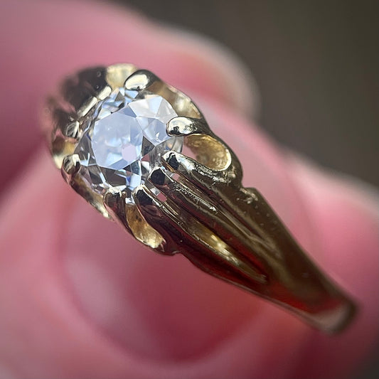 18ct gold Antique 0.80ct Old Cut Diamond Solitaire Gypsy Ring