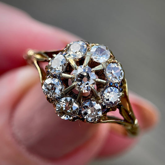 18CT Gold Antique 1.20CT Old Cut Diamond Cluster Ring Size Q