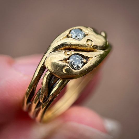 18CT Gold Antique Victorian (1858) Old Cut Diamond Double Headed Snake Ring
