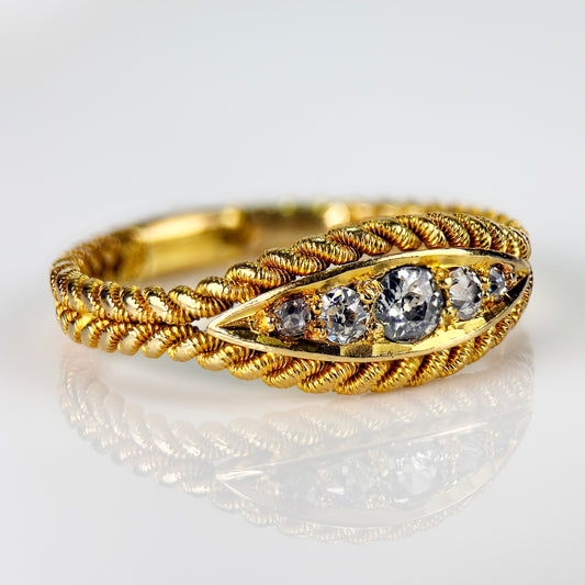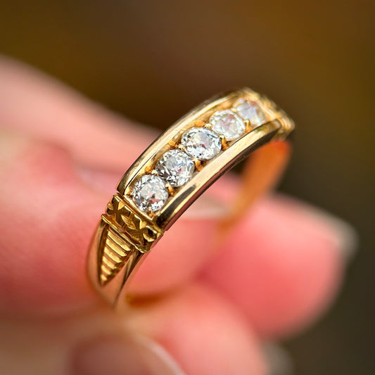18ct Gold Antique Victorian 0.30CT Old Cut Diamond Five Stone Ring Size J