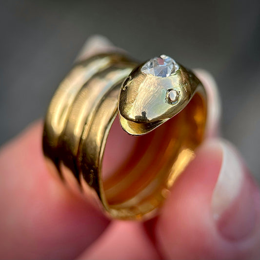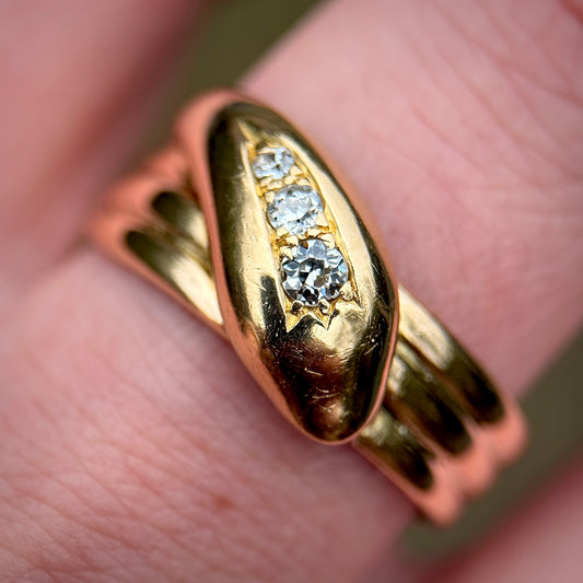 18CT Gold Antique Victorian 0.30ct Old Cut Diamond Snake Ring 9.7 grams