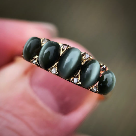 18CT Gold Antique Victorian (1887) Cats Eye Chrysoberyl & Diamond Ring