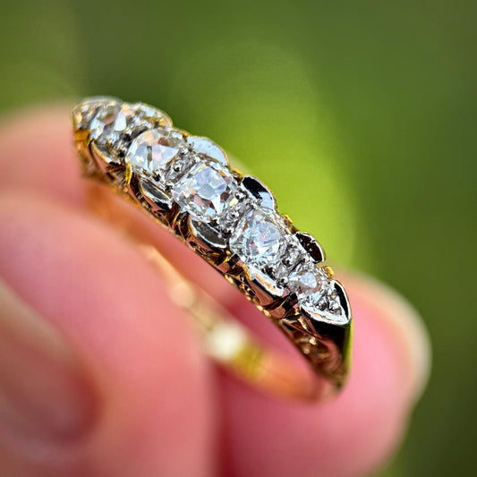 18ct Gold Antique Old Cut Diamond Five Stone Ring Size P 1/2