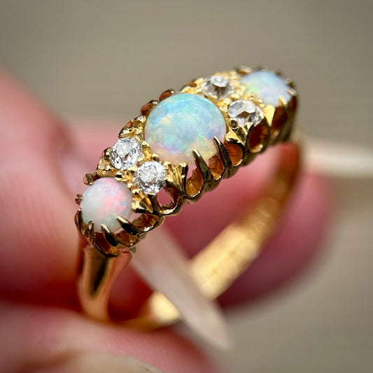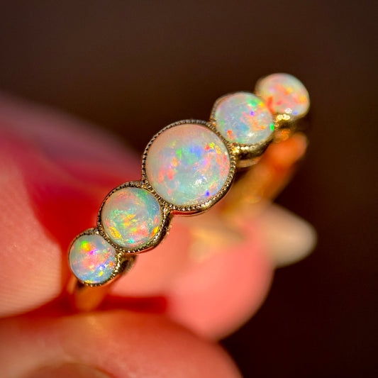 18CT Gold antique fiery crystal Opal five stone half hoop milgrain set ring