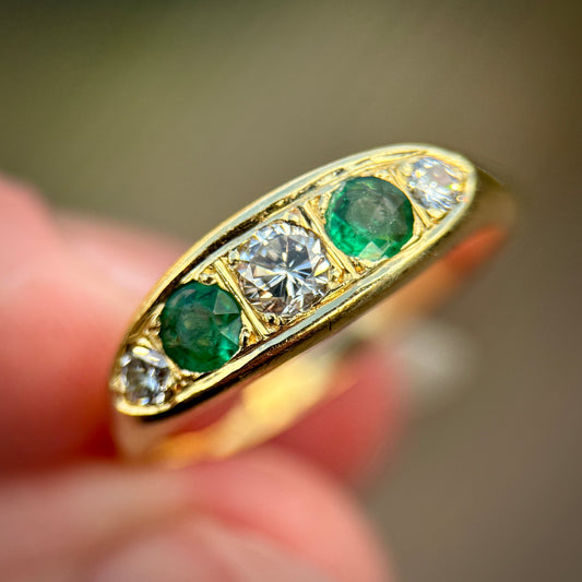 18ct Gold Emerald & 0.40ct Brilliant Cut Diamond gypsy Ring 5.0 grams Size Q