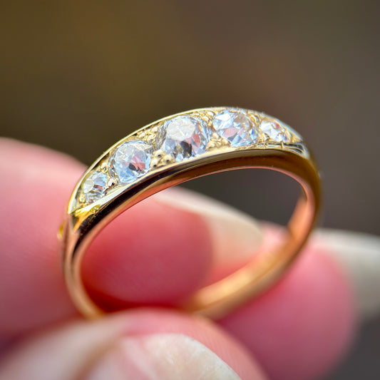 18ct Gold Antique 0.80ct Old Cut Diamond Five Stone Half Hoop Ring Size N