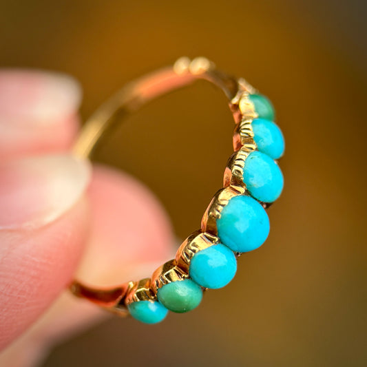 18CT Gold Antique Georgian Turquoise Seven Stone Half Hoop Ring Size K 1/2