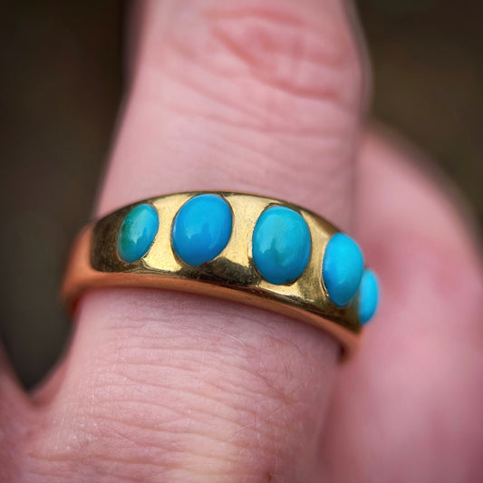 18ct Gold Antique Victorian Turquoise 5 Stone Gypsy Ring size S1 /2 HEAVY 6.8g