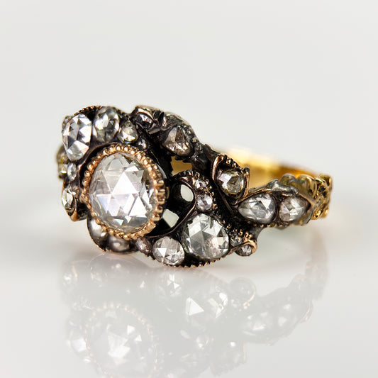 Antique Georgian 1.60ct Old Rose Cut Diamond Gold Ring N 1/2 4.9g