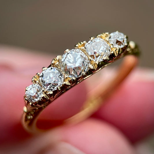 18ct Gold Fully Hallmarked Antique Victorian 0.77ct Old Cut Diamond 5 Stone Ring