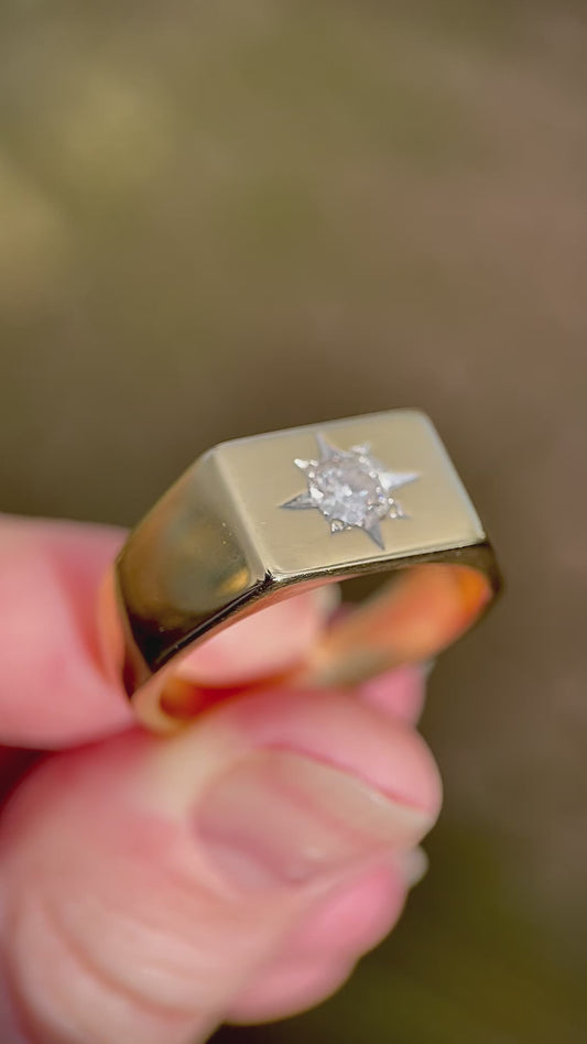 9CT Gold Diamond Solitaire Signet Gypsy Ring Heavy 9.7 grams Size U 1/2