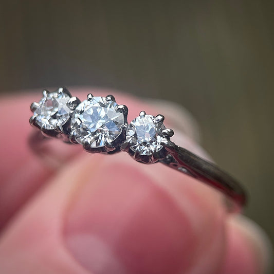 Platinum Antique 0.735ct Old Cut Diamond Three Stone Trilogy Ring size R