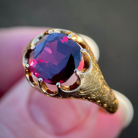 18ct Gold Antique Victorian Fully Hallmark Almandine Garnet Solitaire Gypsy Ring