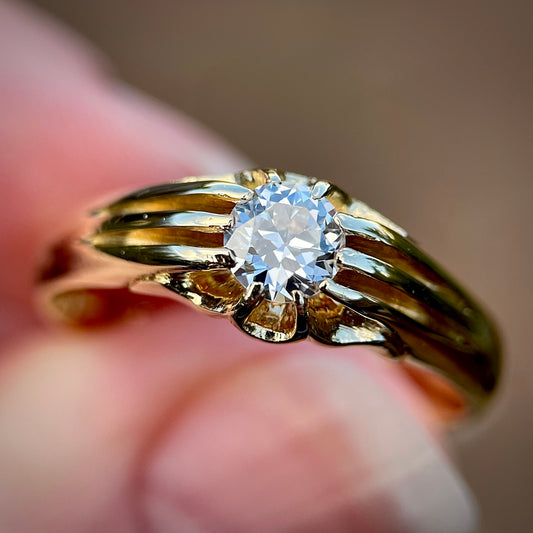 Superb 18ct Gold Antique 0.50ct Old European Cut Diamond Solitaire Gypsy Ring