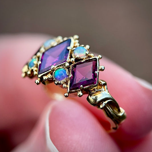 18ct Gold Antique Amethyst & Opal Art Nouveau Arts & Crafts Ring Size J