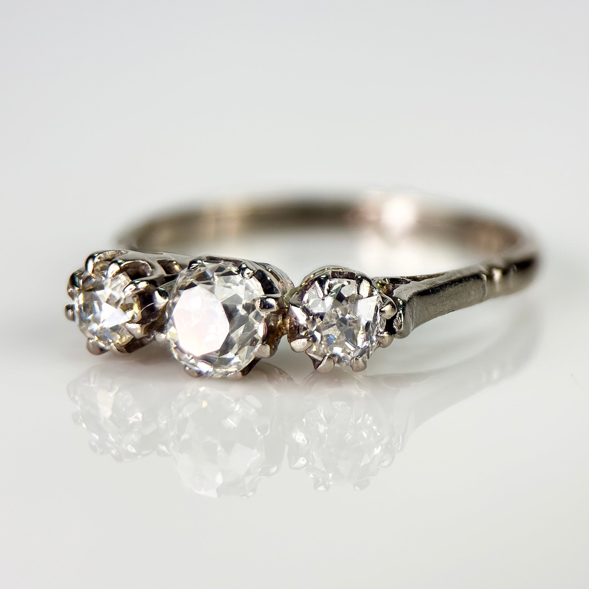 18ct Gold Antique 0.75ct Old Cut Diamond three Stone trilogy ring