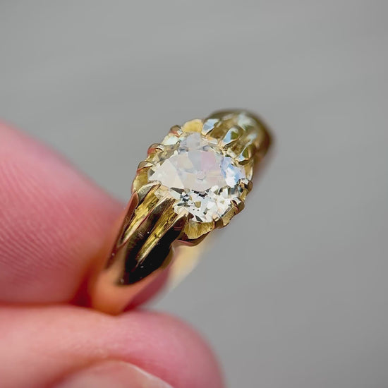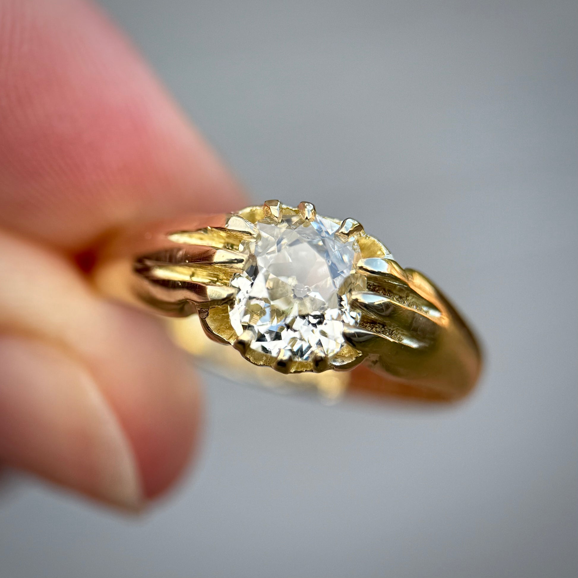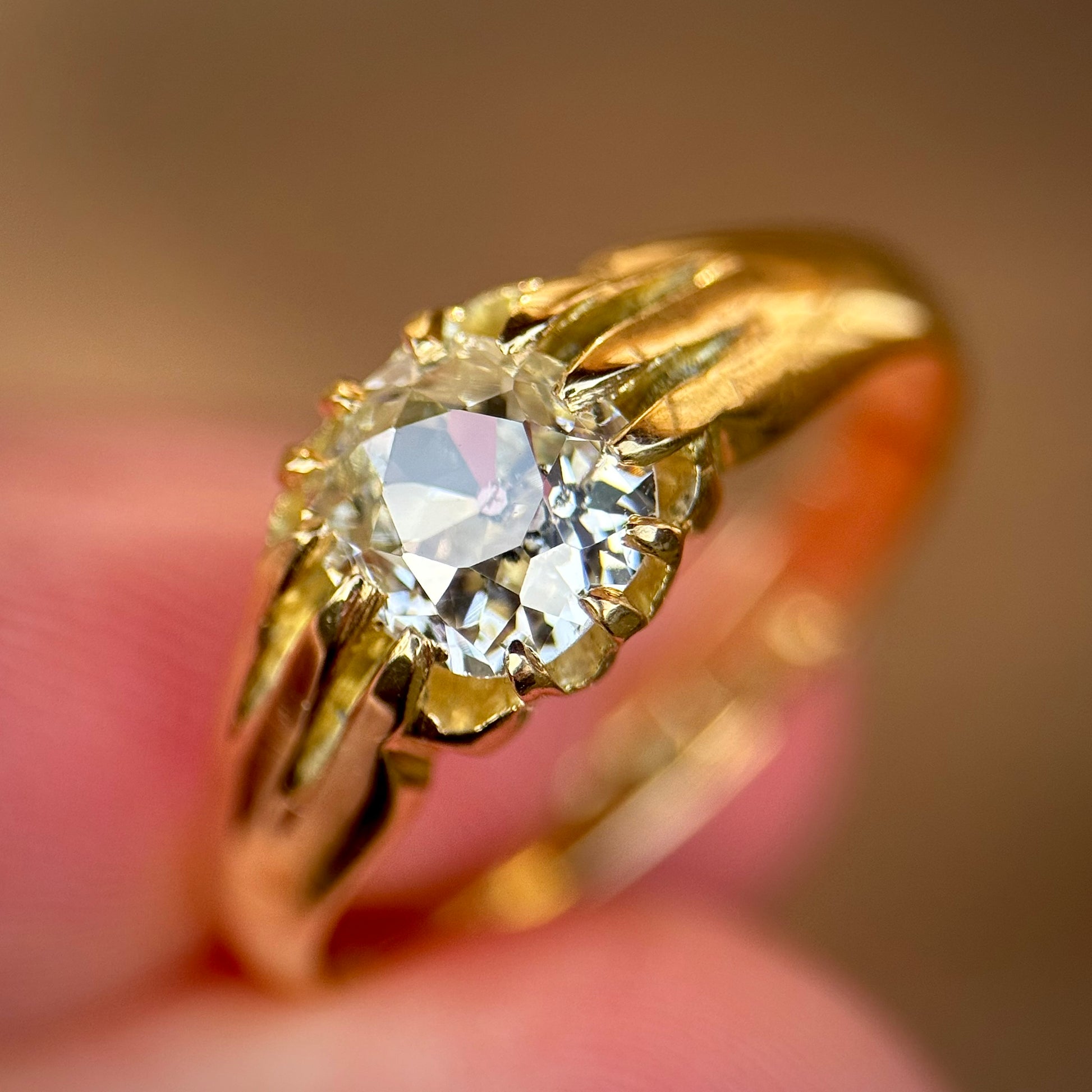 18ct Gold Antique Fully Hallmarked 1.21ct Old Cut Diamond gypsy Ring