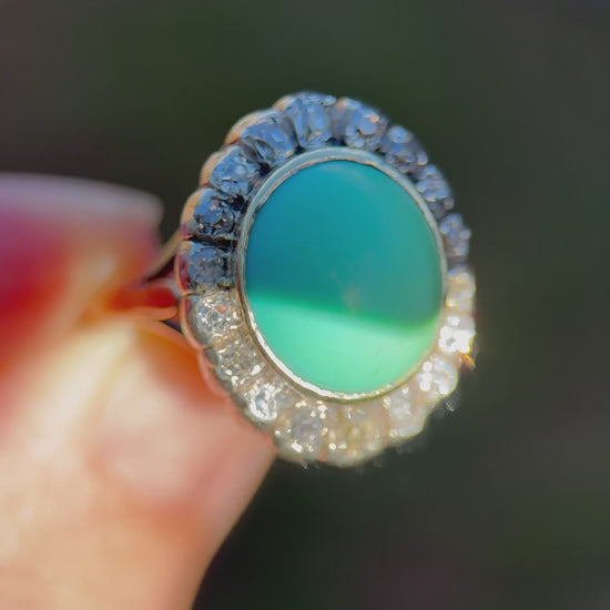 18ct Gold Antique Turquoise & 0.92ct Old Mine Cut Diamond Cluster Cocktail Ring