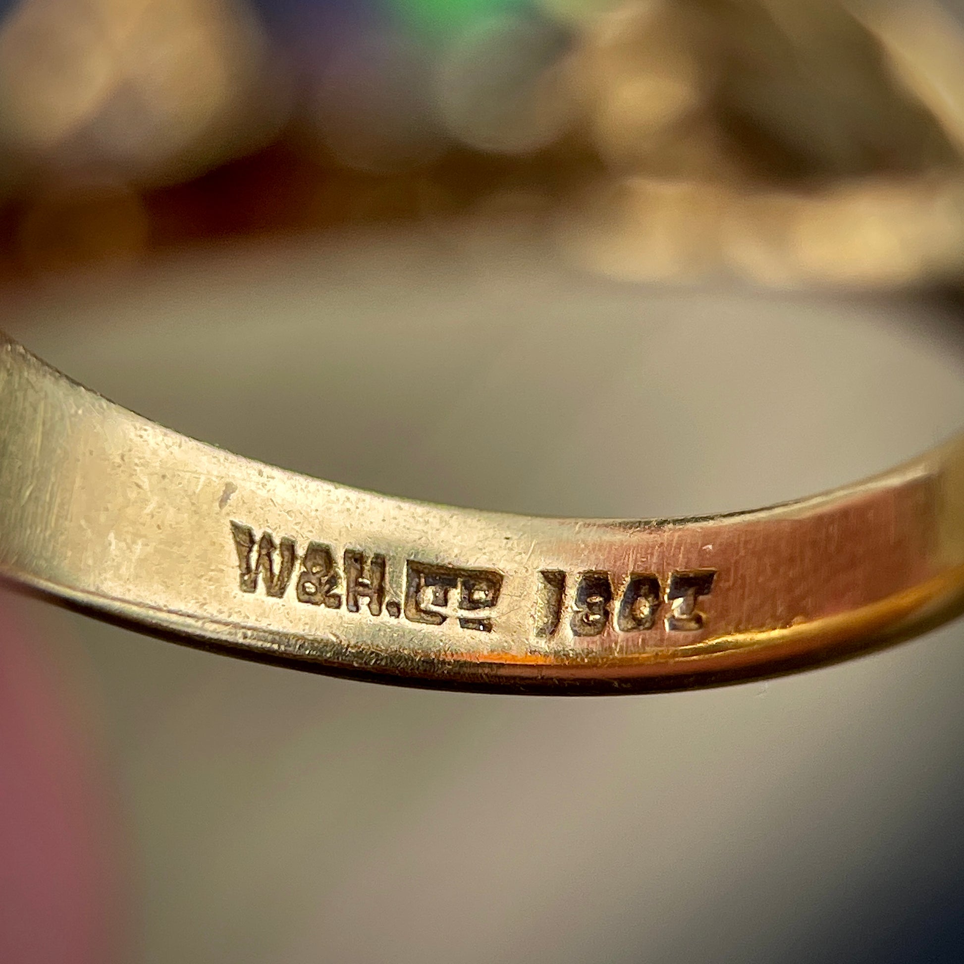 18CT Gold Large Antique Victorian Black Crystal Opal & Old Cut Diamond Ring