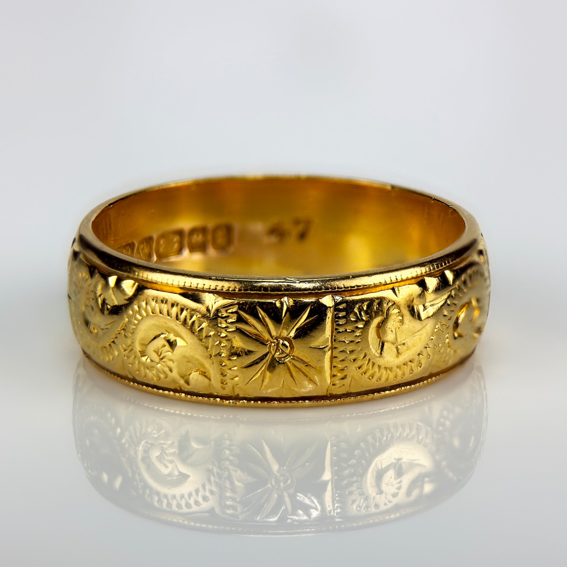 22ct Gold engraved wedding band Ring HEAVY 5 grams