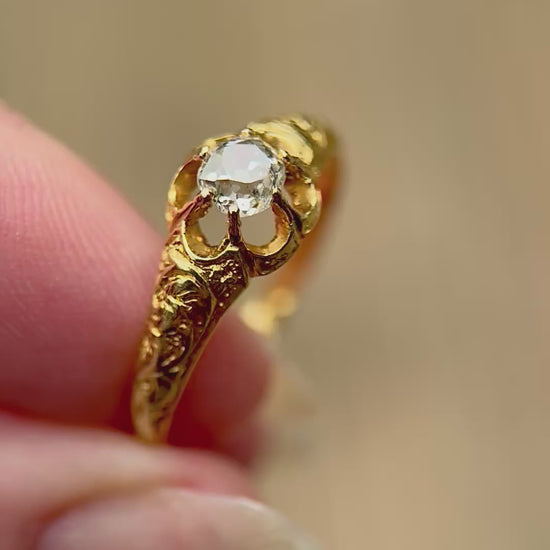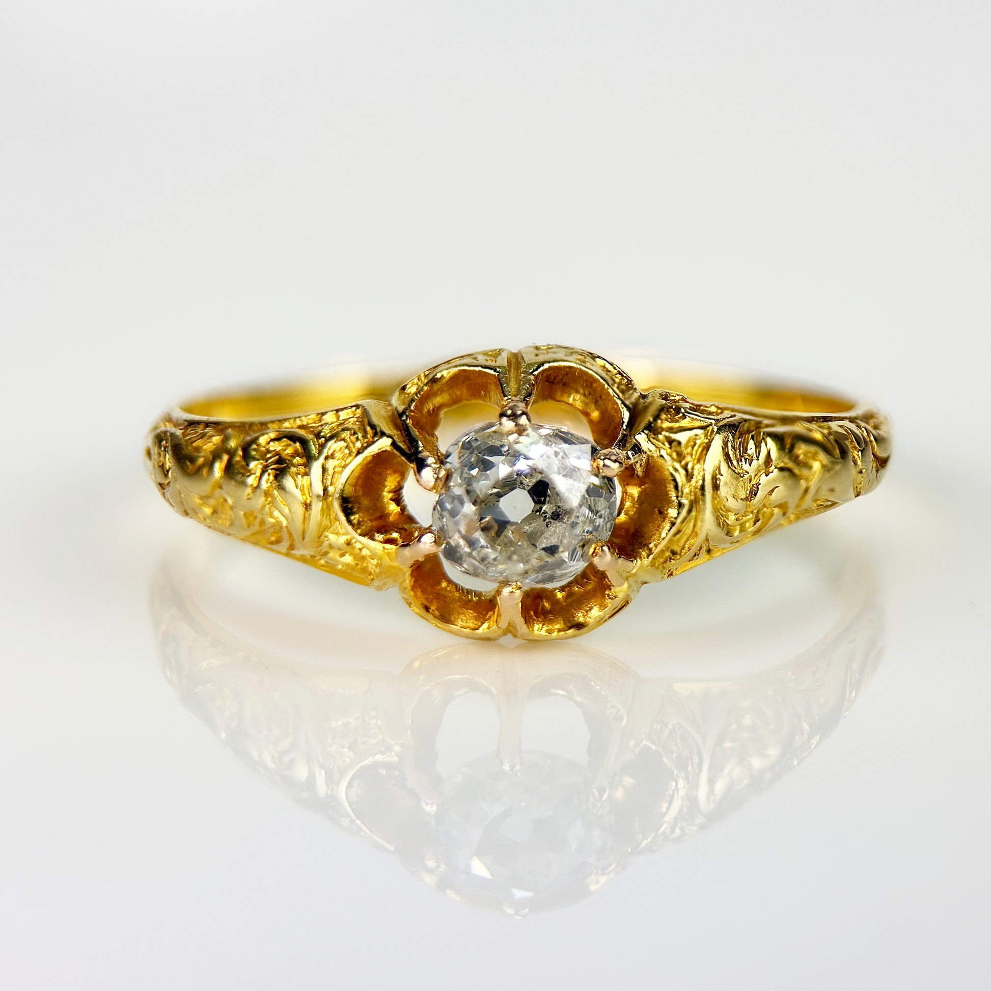 18ct Gold Antique 0.40ct Old Cut Diamond gypsy Ring